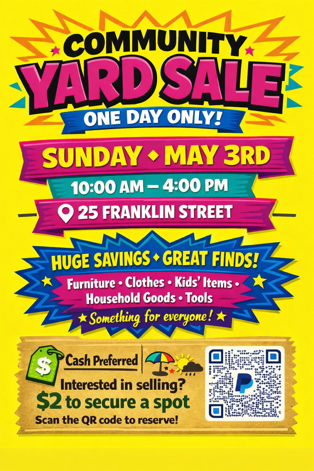 « All Events Community Yard Sale May 3 @ 10:00 am - 4:00 pm Bucksport Vendor Bender » If you would like to sell your items, please scan the bar code or use info@bucksportbaycoalition.com in PayPal. + Google Calendar+ iCal Export Details Date: May 3 Time: 10:00 am - 4:00 pm Event Category: Entertainment Venue 25 Franklin Street, Bucksport, ME 25 Franklin St. Bucksport, ME United States + Google Map